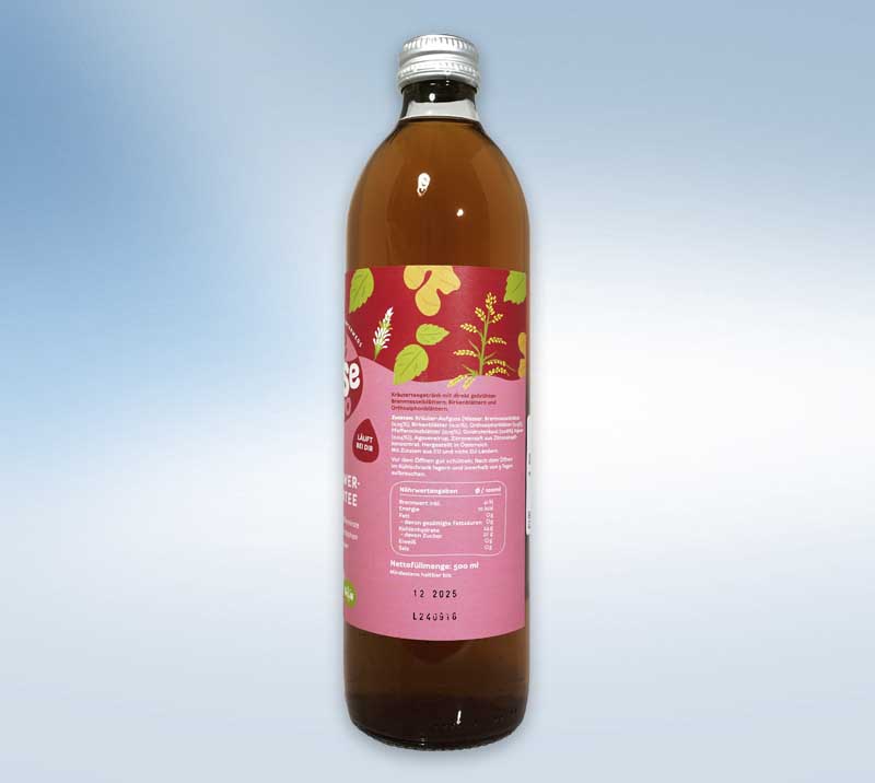 „Die Blase to go“ ist dein Power-Kräutertee mit hochwertigen Zutaten wie Brennnessel, Birkenblättern, Orthosiphonblättern, Goldrute, Pfefferminze, Bio-Ingwer und Bio-Zitronensaft, leicht gesüßt mit Bio-Agavensirup und bereit zum Trinken.