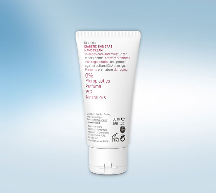 Durch die veränderte Stoffwechsellage werden die Zellen in unserer Haut besonders beansprucht. EUBOS Diabetische Hautpflege Handcreme enthält Inhaltsstoffe, die speziell für diabetische Hautpflege geeignet sind. Die Haut wird glatter, raue Fingerkuppen fühlen sich regeneriert und gepflegt an.