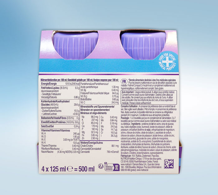 Fortimel Compact 2.4 ist eine hochkalorische, wohlschmeckende Trinknahrung in geringem Volumen und ist speziell geeignet für Menschen, die nur kleine Portionen zu sich nehmen können. Sie enthält alle lebenswichtigen Nährstoffe in bedarfsgerechter Menge (vollbilanzierte Diät) und eignet sich zur ausschließlichen und ergänzender Nahrung.