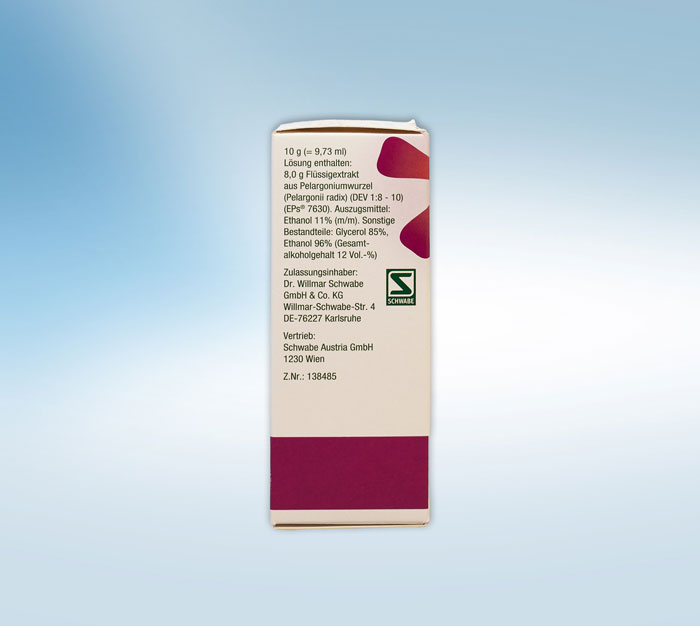Kaloba® sollte schon bei den ersten Symptomen einer Erkältung eingenommen werden. Um einen Rückfall zu verhindern, sollte die Einnahme auch nach Abklingen der Symptome noch mehrere Tage fortgeführt werden. Die Behandlungsdauer sollte 3 Wochen nicht überschreiten. Der in Kaloba® enthaltene Wirkstoffextrakt aus der Kapland-Pelargonie wird ausschließlich von Pflanzen aus organisch-biologischer Landwirtschaft nach strengen Qualitätskriterien gewonnen und ist auch als Sirup für die Kleinsten erhältlich.