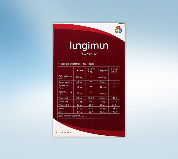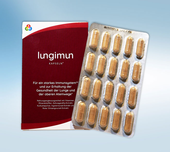 Lungimun Kapseln enthalten einen einzigartigen Wirkkomplex aus Vitaminen, Mineral- sowie Mikronährstoffen und sind daher ein absolutes Multitalent für Ihre Gesundheit.