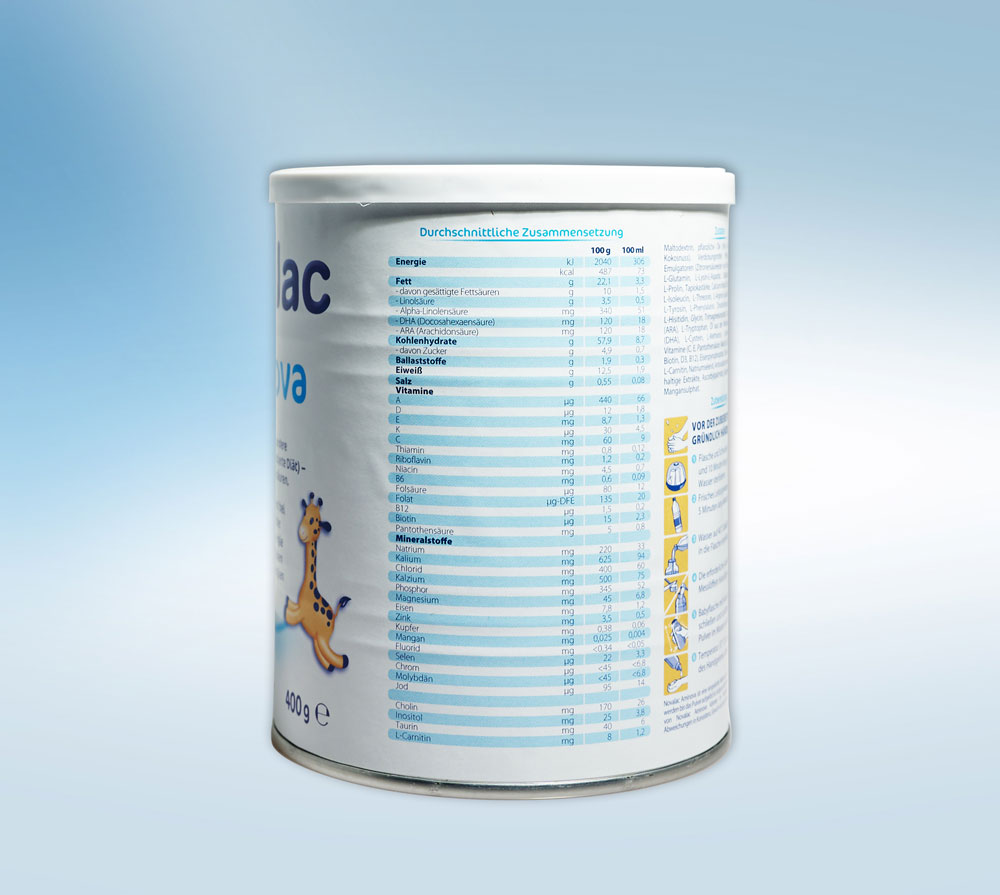Die Zusammensetzung der Säuglingsmilchnahrungen Novalac entspricht den EU-Richtlinien über Säuglingsmilchernährung, enthält keine gentechnisch veränderten Organismen (GVO).
