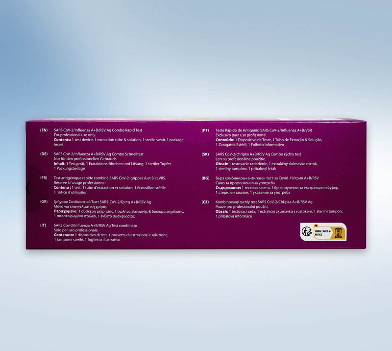 4-Fach Antigen Schnelltest Test, um die Top4 der respiratorischen Viren SARS-CoV-2, Influenza A+B/RSV (respiratorisches Synzytial Virus) nachzuweisen.