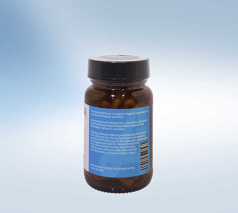 Reismehl, Reduziertes L-Glutathion, Überzugsmittel: Hydroxypropylmethylcellulose (Kapselhülle), Reisstärke, Calcium-L-ascorbat.