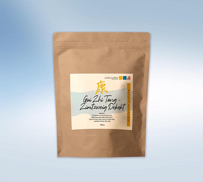 TCM Granulat Mischung mit den Hauptbestandteilen Cinnamomi cassiae ramulus (Zimtzweige) und Paeoniae lactiflorae radix (weiße Pfingstrosenwurzel). Die Mischung wird bereits seit dem 2. Jahrhundert in der TCM verwendet und zählt zu den bekanntesten Rezepturen gegen Wind Kälte.
